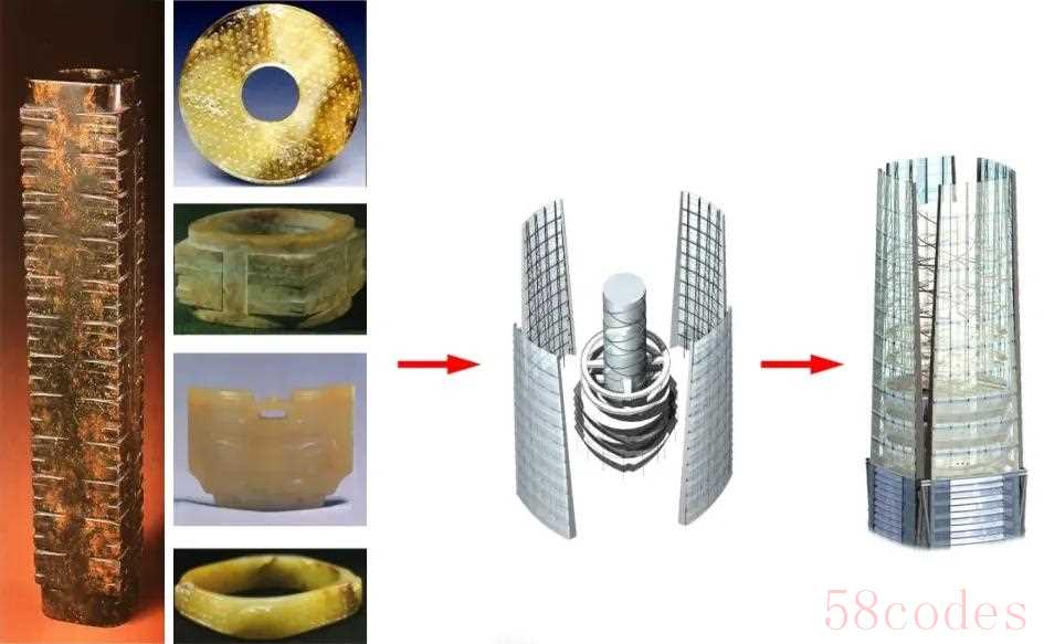 同济院的设计方案巧妙融合如玉琮、竹文化、良渚文化等传统文化元素。塔楼总建筑面积约500000㎡,高度为580米,建筑形体自下而上分为八节,仿若竹节般逐渐收分,每一节设置避难层与观景平台,既强化了结构,也丰富了空间体验。