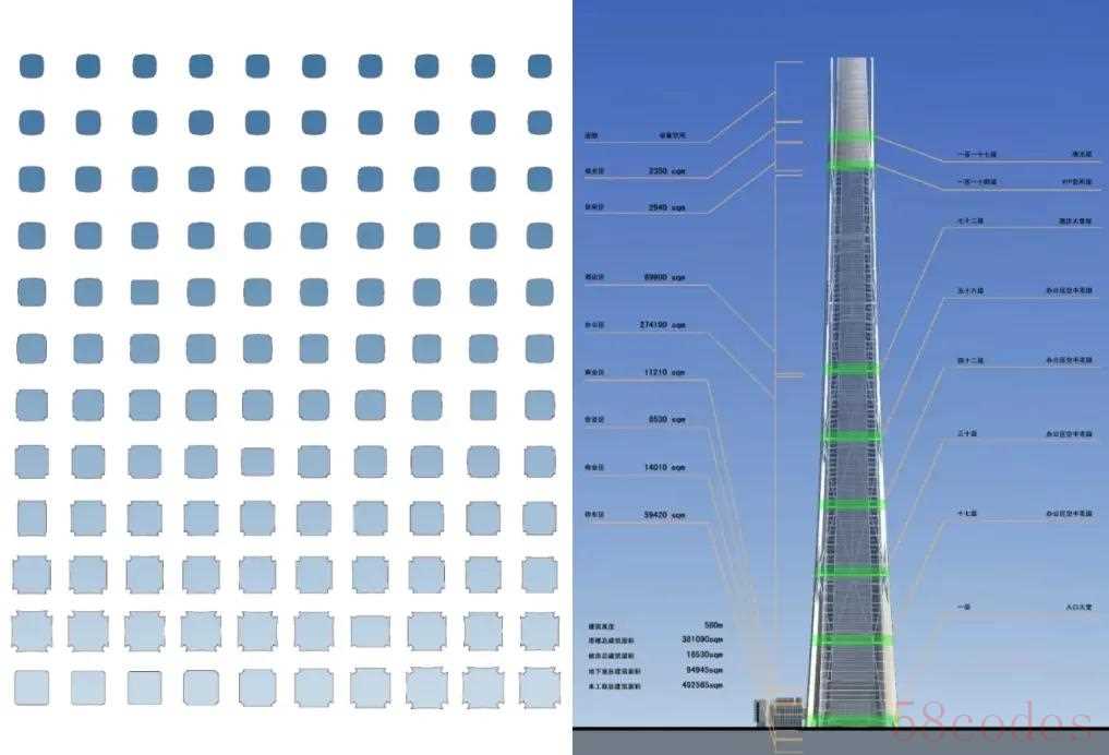 2. "概念性或研究性设计:" 同济大学可能进行过一项研究或提交过一个概念设计方案,其高度为580米,但这只是一个学术探讨或竞赛作品,并非实际建设的项目。