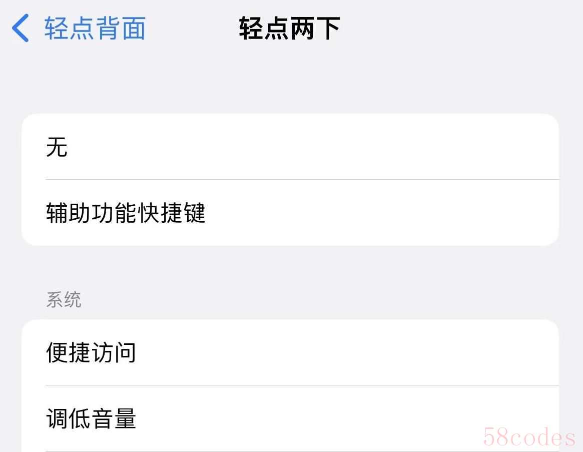双击/三击手机背板;同样在设置-辅助功能-触控这一位置,下拉到最后找到轻点背面功能,然后就可以根据自己的喜好任意设置,不光可以敲击背板截图,包括音量、静音、相机等等数十种功能,关键是还可以接通快捷指令,像前段时间非常火的敲击背板快速调出健康码就是通过这一功能。