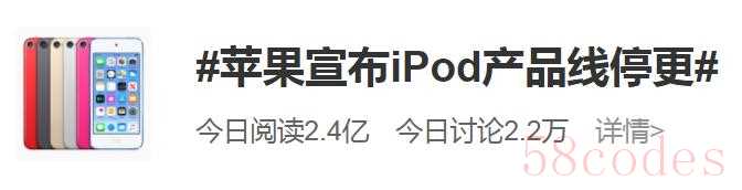 对于苹果宣布iPod产品线停更,不少网友表示伤感:“白色,iPod touch 4,愤怒的小鸟,会说话的Tom猫,水果忍者,再见”“第一次接触iOS就是iPod Touch,手里还有一部iPod Classic,这都是情怀”“一度是我心中最酷的产品”“还记得那个广告模特把各种颜色的iPod小夹子往身上包上随处一夹,立马就让我想买当年那个MP3,我记得是花了八百多,好像当时可是巨款了”