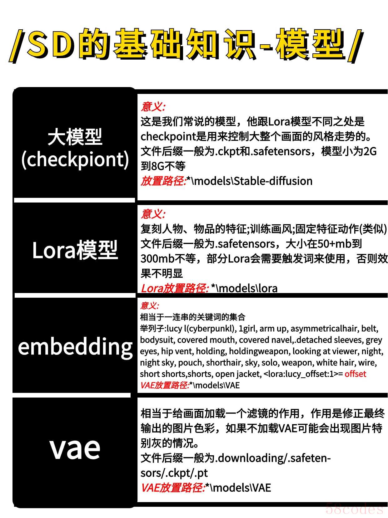2. "LoRA (Low-Rank Adaptation):" 用于微调模型,生成特定风格或角色的图像,通常更小。