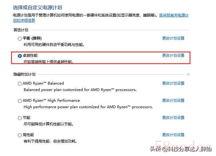 - 在电源选项中,你应该能看到“卓越性能”计划。选择该计划以启用它。