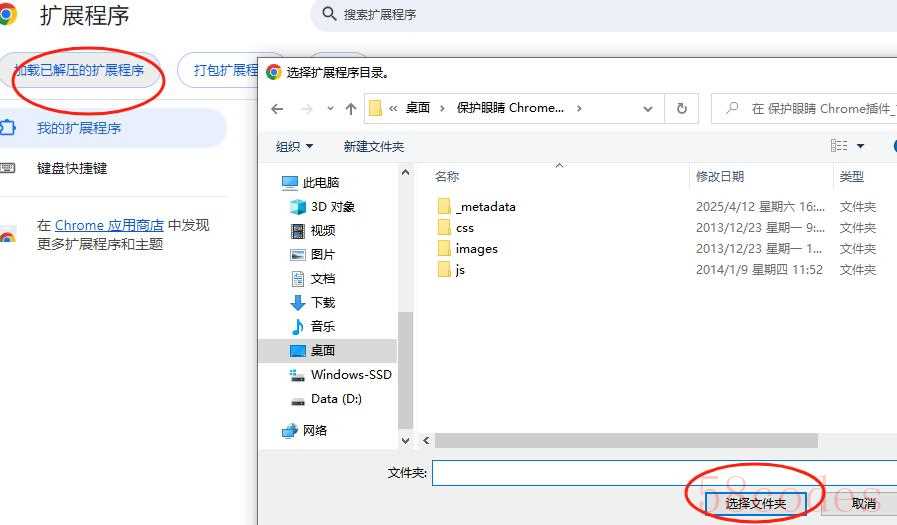 再打开浏览器扩展程序管理,用加载已解压的扩展程序进行加载,选择正确的文件夹后,安装成功。