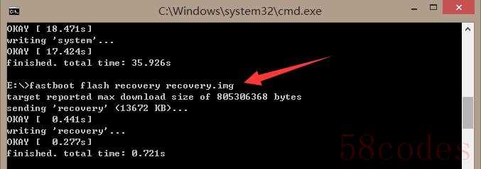 ⑤键入fastboot flash recovery recovery.img并回车,看到finished表示刷入recovery.img成功;到这里,99.9999%的砖机已经成功“救活”!,但不要着急,咱们接着使用命令退出Fastboot模式;