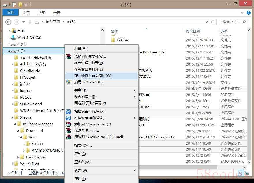 复制到根目录下后,鼠标单击所在的硬盘盘符,按住电脑SHIFT键+鼠标右键,出现“在此处打开命令窗口(W)”,即可进入CMD界面;将坏手机长按开关机键,强制重启,按住音量减+开机3秒,即可进入Fastboot界面(小米米兔修理机器人),使用完好的手机数据线连接手机和电脑,出现安装驱动界面,等待安装完成,拔插一次USB,听到USB设备插入音,即可开始刷机了。