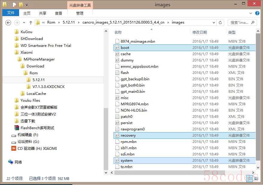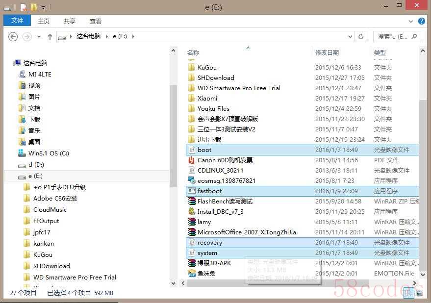 找到文件夹中的fastboot.img、boot.img、recover.img、system.img这四个文件(必须在同一个线刷包中选取)复制这4个文件到D盘或E盘根目录!这样找起来方便。
