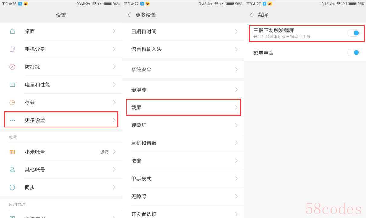 很多朋友可能只知道下拉菜单的截屏和按锁屏键+音量下键这两种截屏方式,但其实小米手机还有一个更好的截屏手势,那就是三只下滑截屏。