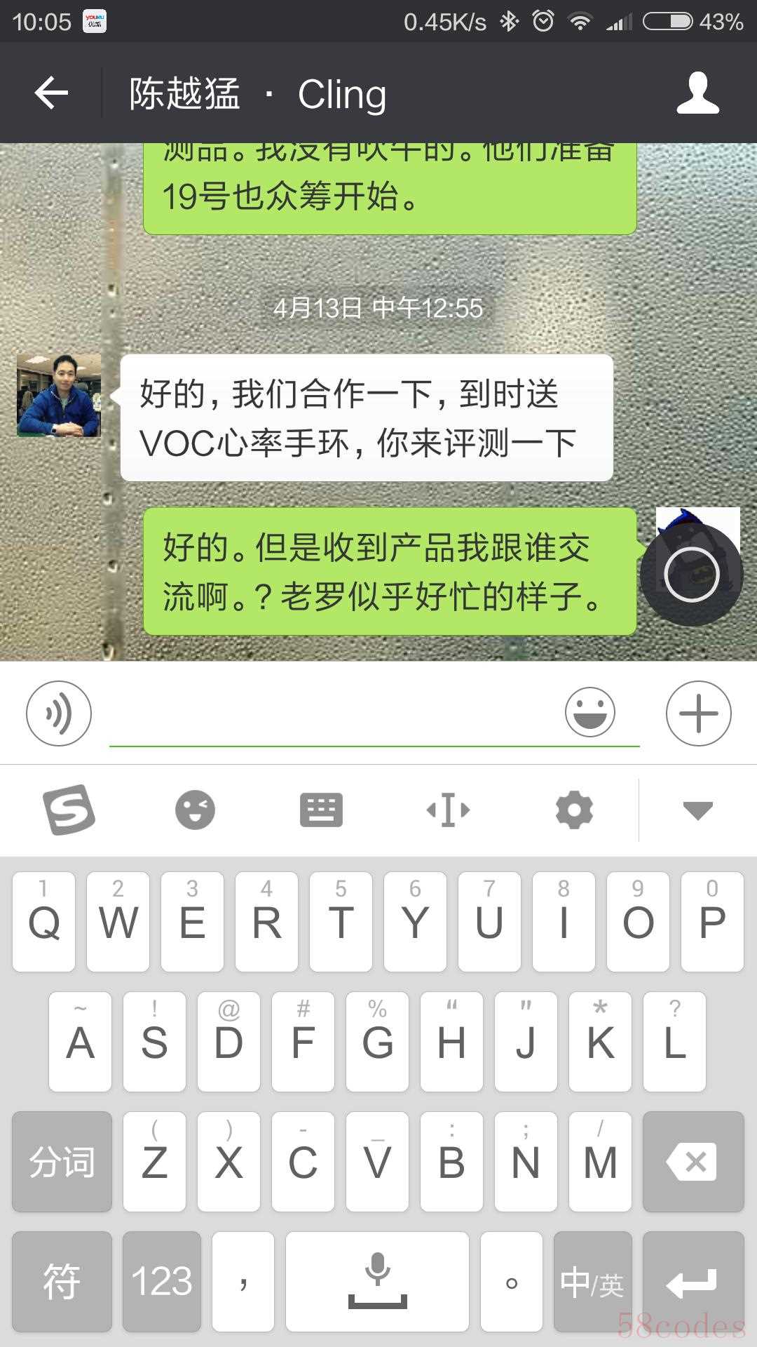 微信就没问题,不会挡住,曝光了下和陈越孟博士的聊天,接下来会有和翰临合作的VOC手环的评测。