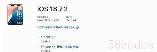 只有iPhone XR、XS、XS Max三款机型,仍保留iOS18。7。2的固件签名。