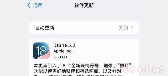 iOS18。7。2正式版推送,但仅限部分老机型可降级。