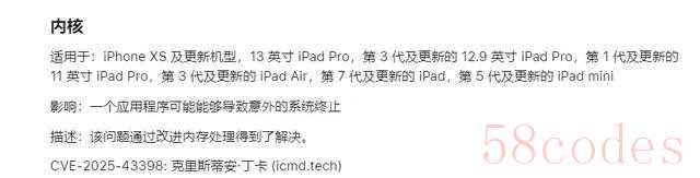 iOS18。7。2修复了此问题,但未公开说明,属隐蔽性安全加固。