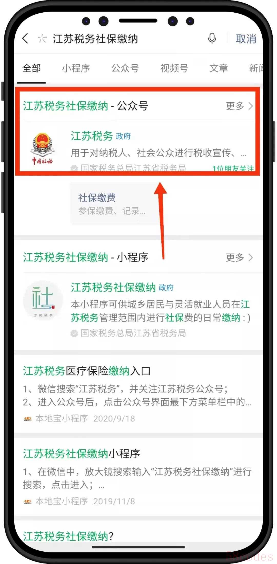 左右滑动查看更多除此之外,还可以直接搜索并关注当地的税务局(或社保局)公号进行缴费。