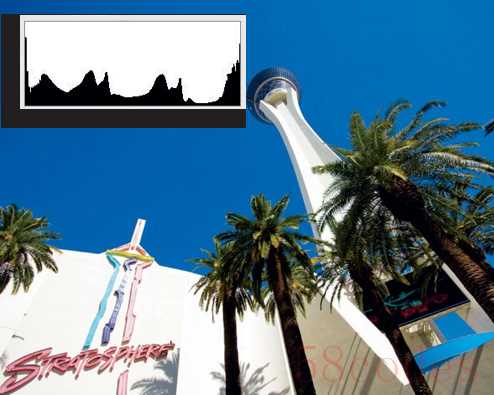 我们在相机中看到的直方图和在Photoshop中的完全一样。每个像素点都可以通过红、蓝、绿的组合呈现出各种颜色,而且还能把颜色的亮度分为256个等级,0级为最暗色,也就是黑色;255级为最亮色,即纯白色。在格式为JPEG的文件中,这265个级别的亮度都可以呈现。它使用的是8位的二进制的模式,三种颜色的亮度分别从00000000到11111111。