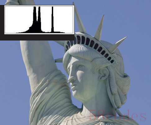在光强对比度很高的情况, 照片的直方图就会在明暗部都出现峰值, 此时就要寻找更适合拍摄的角度,减小对比度。