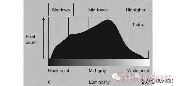 直方图是一张二维的坐标系,其横轴代表的是图像中的亮度,由左向右,代表从全黑逐渐过渡到全白。