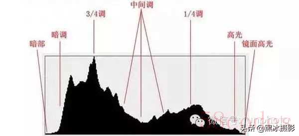 "曲线:" 直方图的形状显示了照片中不同亮度区域的像素分布情况。