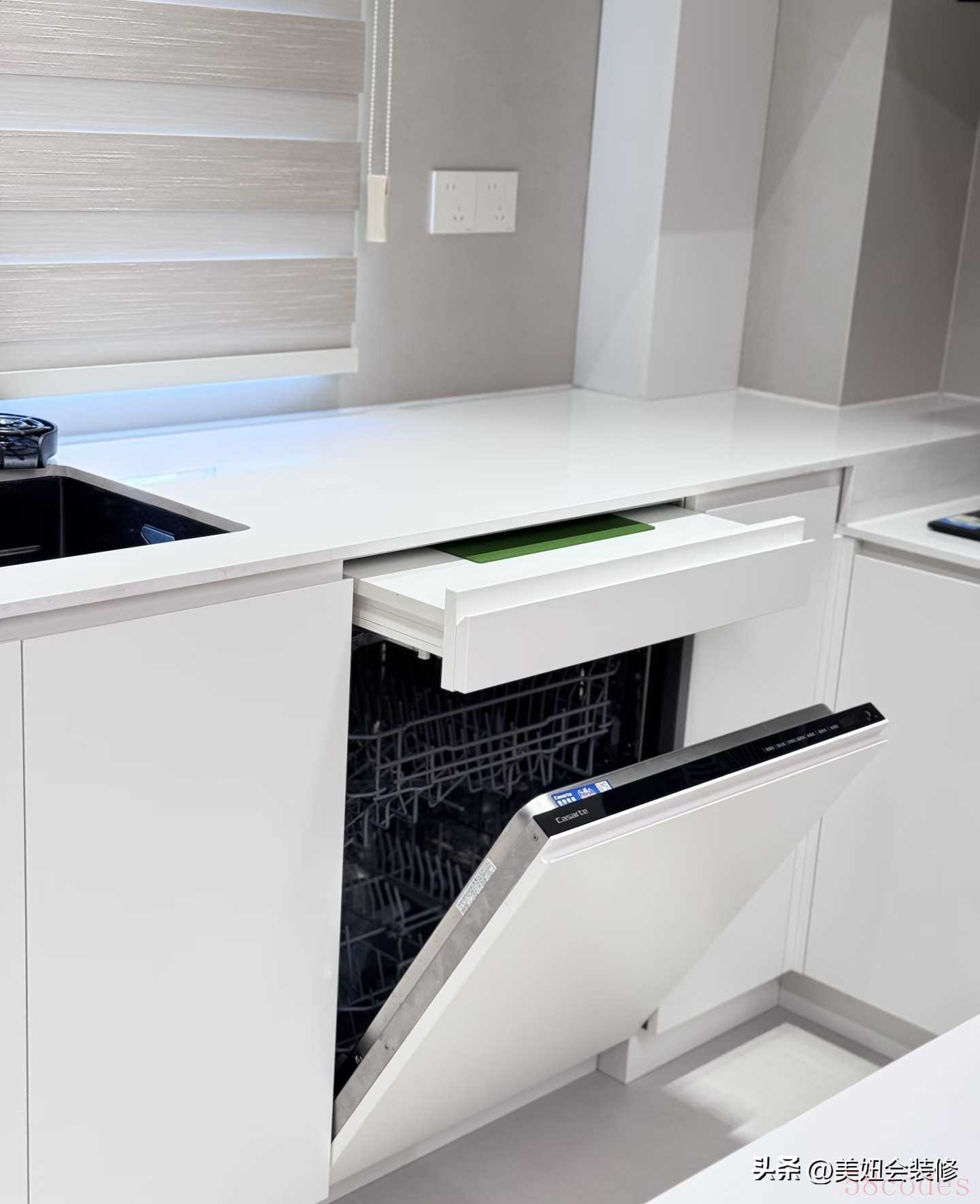 3. 嵌入式洗碗机:洗碗机嵌入橱柜,台面没有凸起,清洁完直接放进柜体;