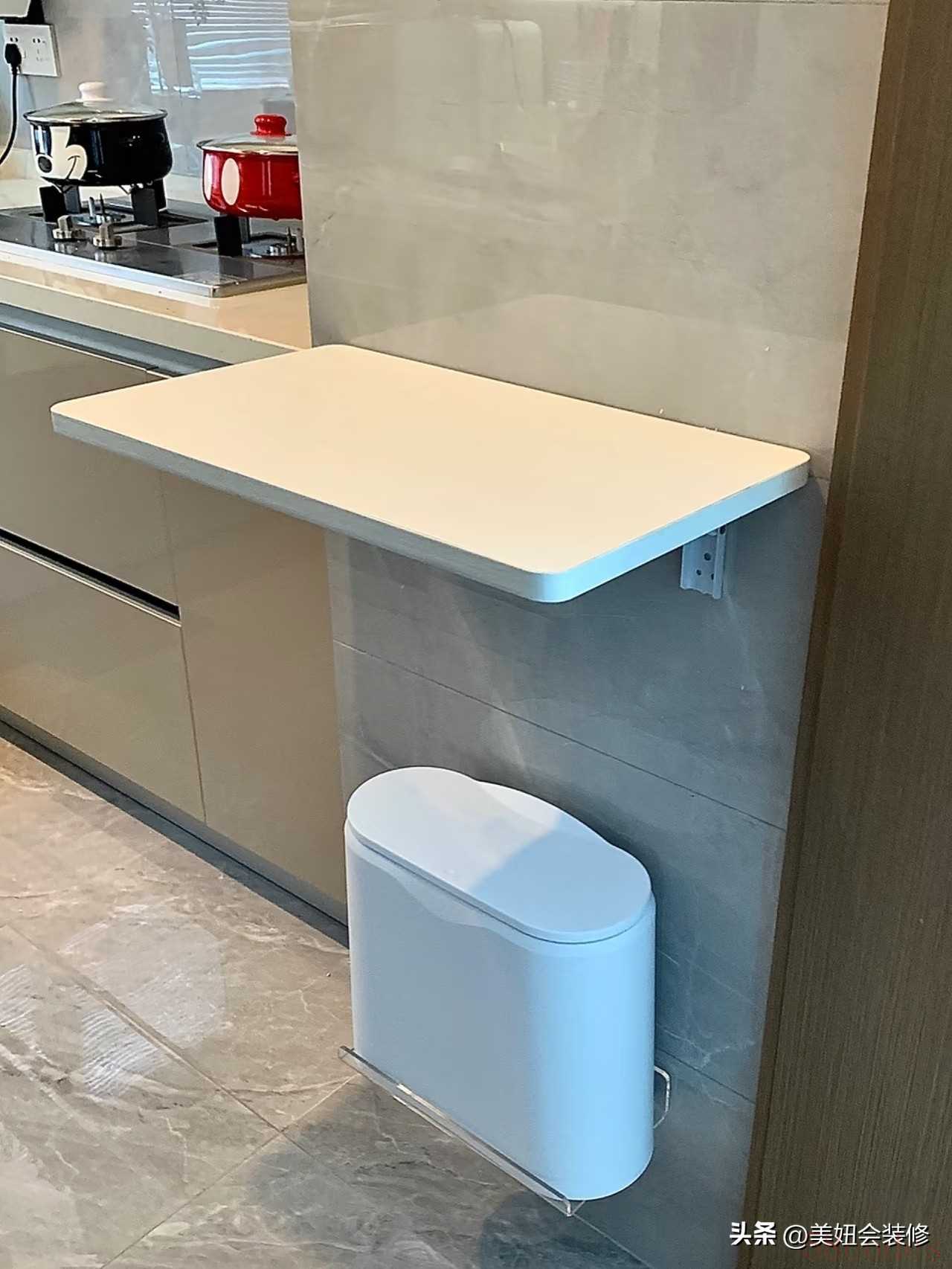 3.可折叠壁挂桌:如果台面空间实在有限,还可以在水槽旁装可折叠壁挂桌,展开能放小家电,收起后不占任何地面空间,满足临时操作需求。