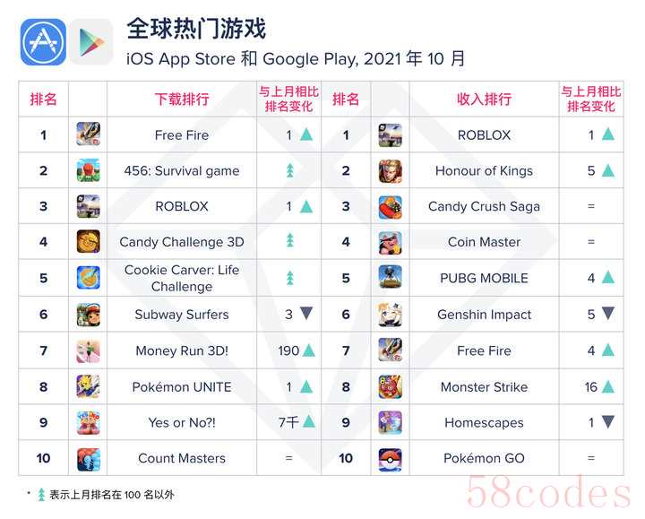 ▲ App Annie 10 月全球热门游戏下载、收入榜