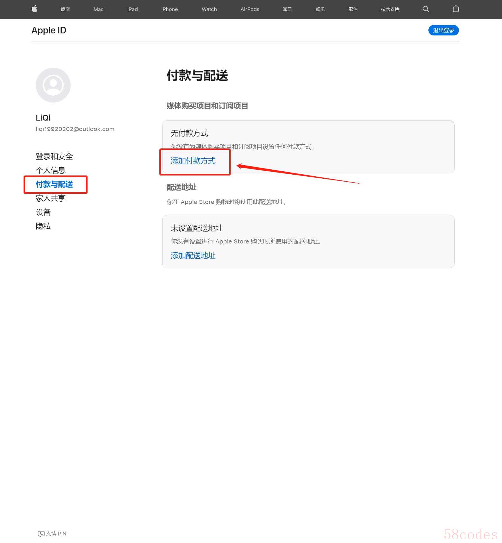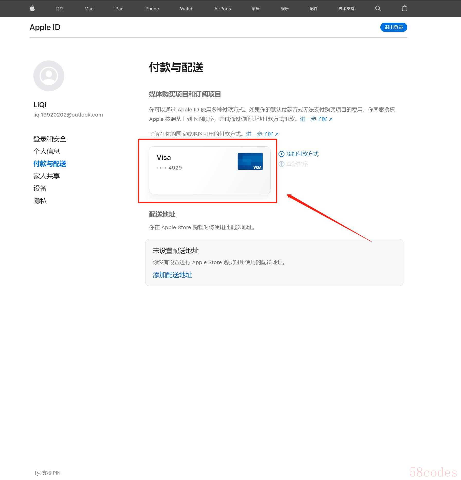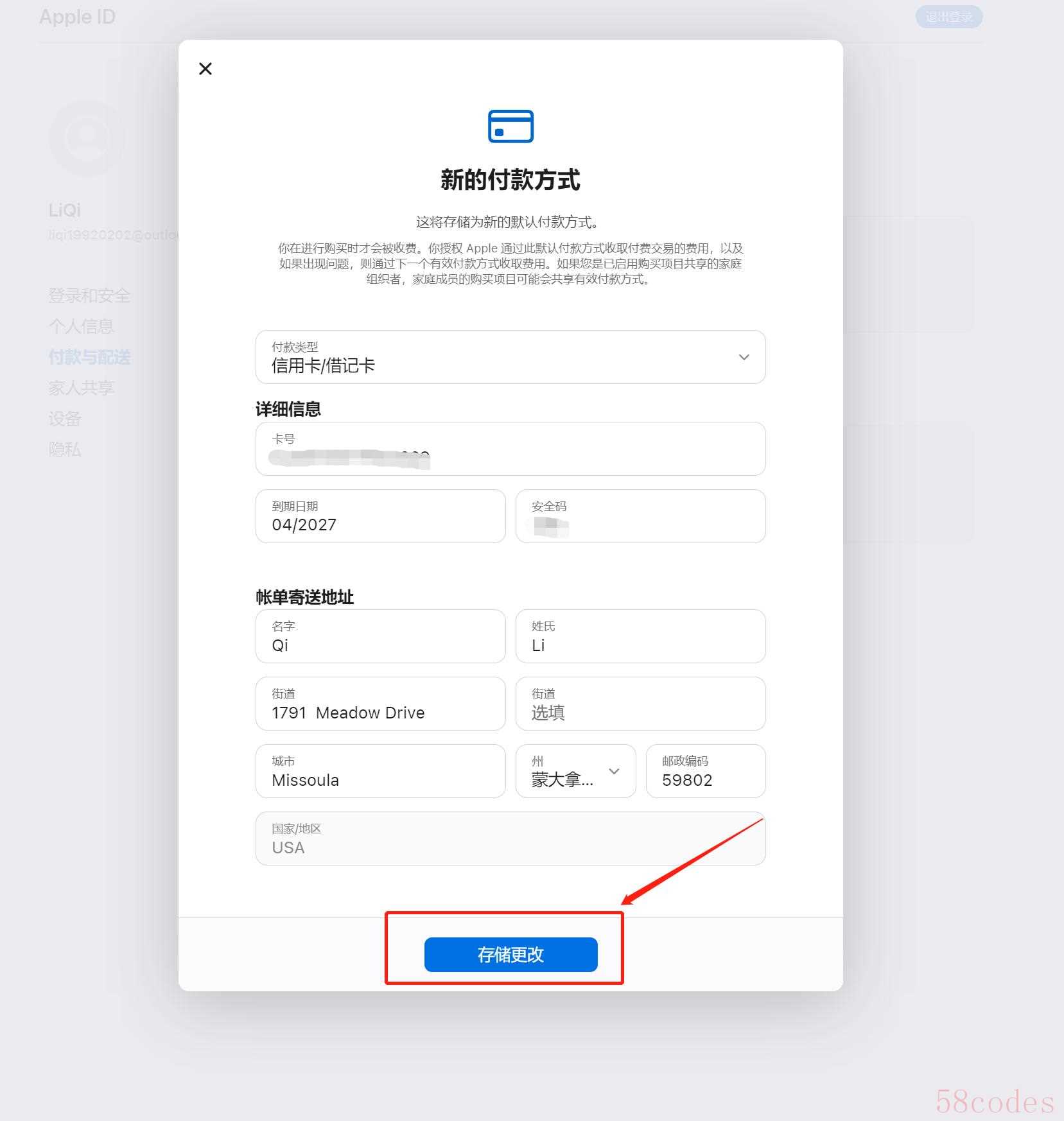 第四步:添加付款方式,输入Visa卡信息,然后“存储更改”(Visa卡获取方法:FOMEPay)