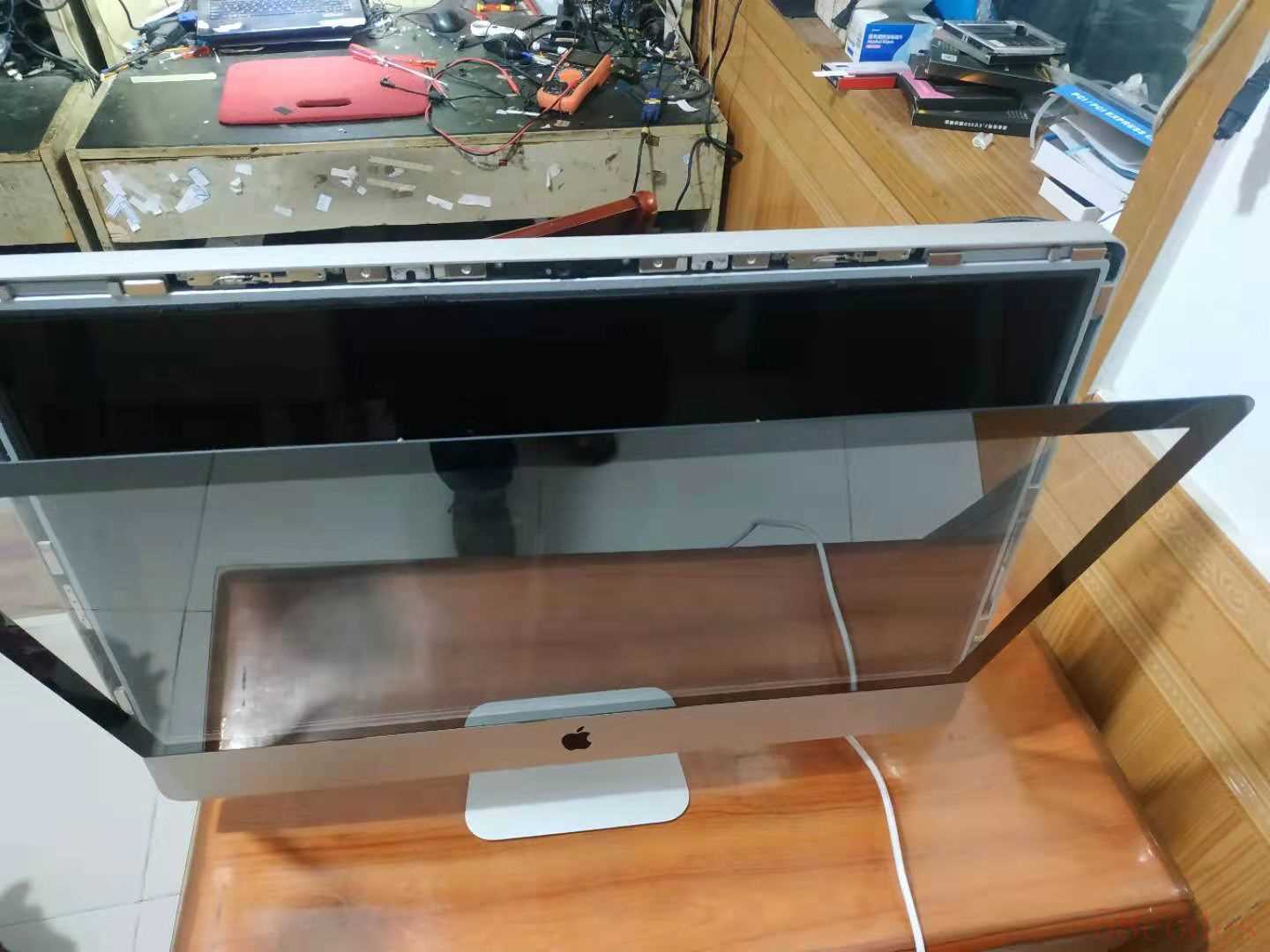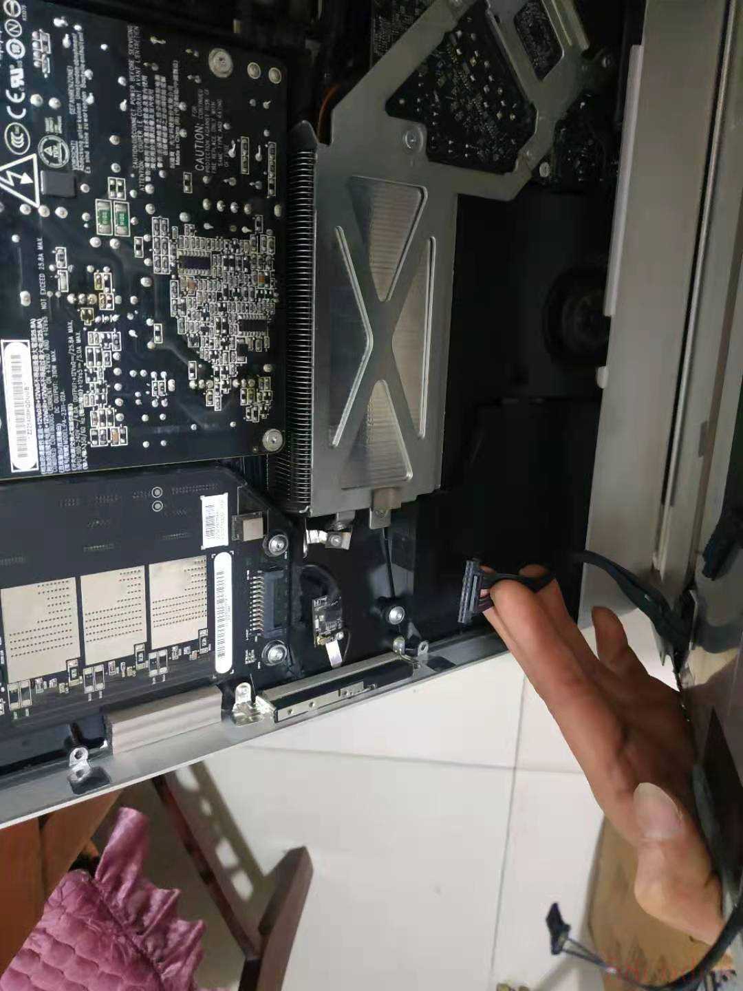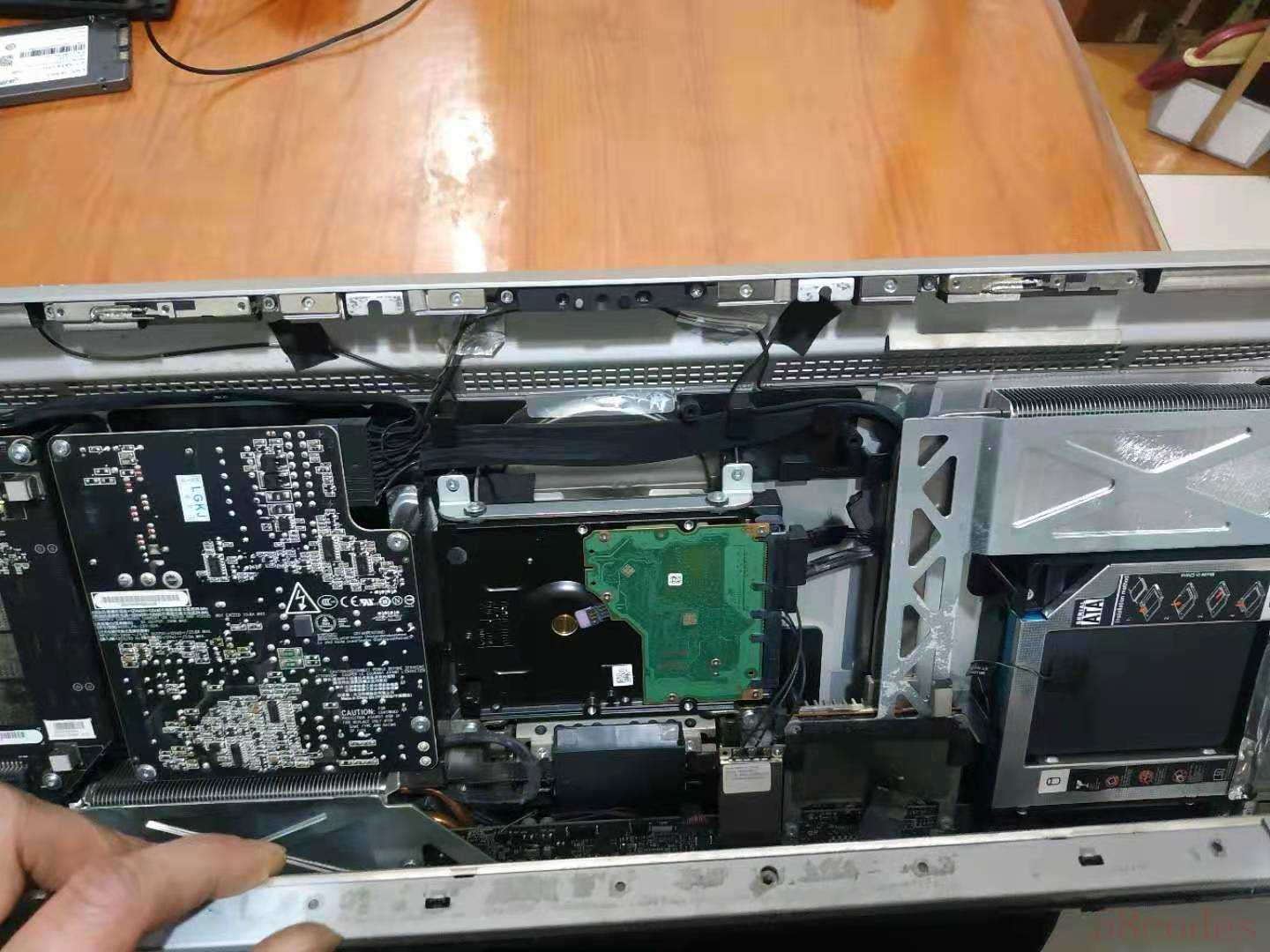 今天接了一台苹果一体机,厚款的,开机进不了系统,经检测发现里面有两个硬盘,其中一个120G固态坏掉了,维修更换步骤分享如下: