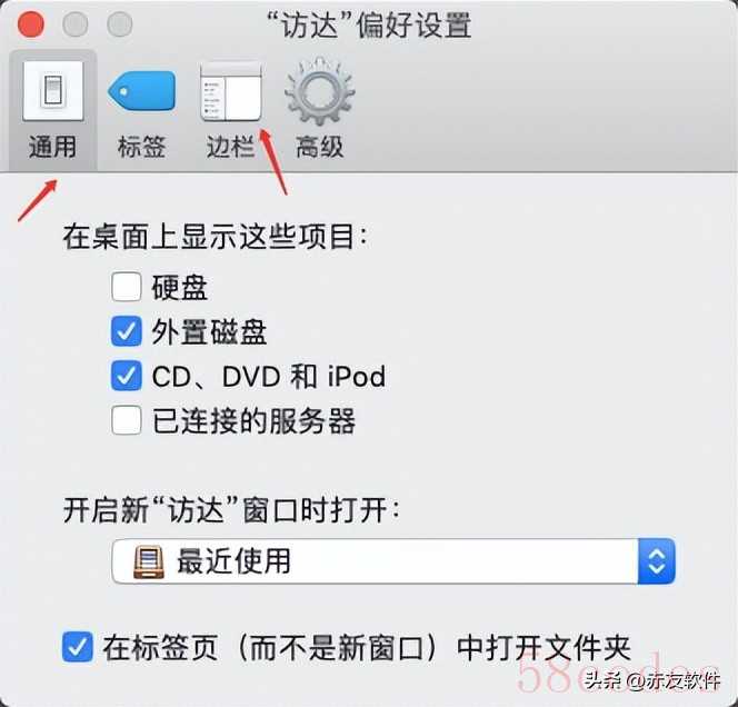 如果未勾选显示“外置磁盘”,就算将硬盘连接到Mac上,在Mac桌面也不会显示硬盘图标,让我们误以为Mac不识别硬盘,产生“NTFS Mac硬盘没有读取”的疑惑。我们只需依次点击【访达-系统偏好设置-通用/边栏】,勾选“外置磁盘”即可。