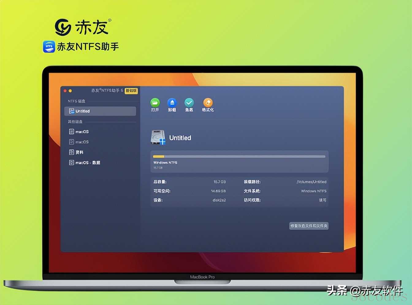 - 连接移动硬盘之后,借助赤友NTFS读写NTFS硬盘;