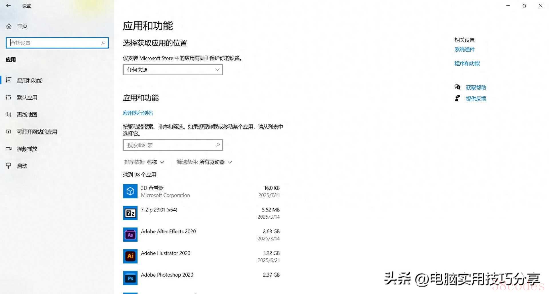 打开"设置" → "应用" → "应用和功能"(或者按win+X组合键,选择“应用和功能”)