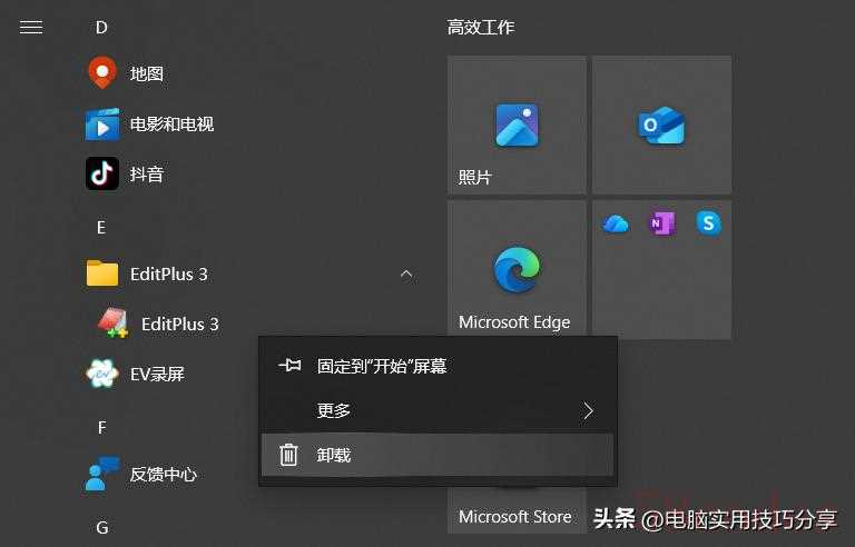 右键点击程序图标,选择“卸载”