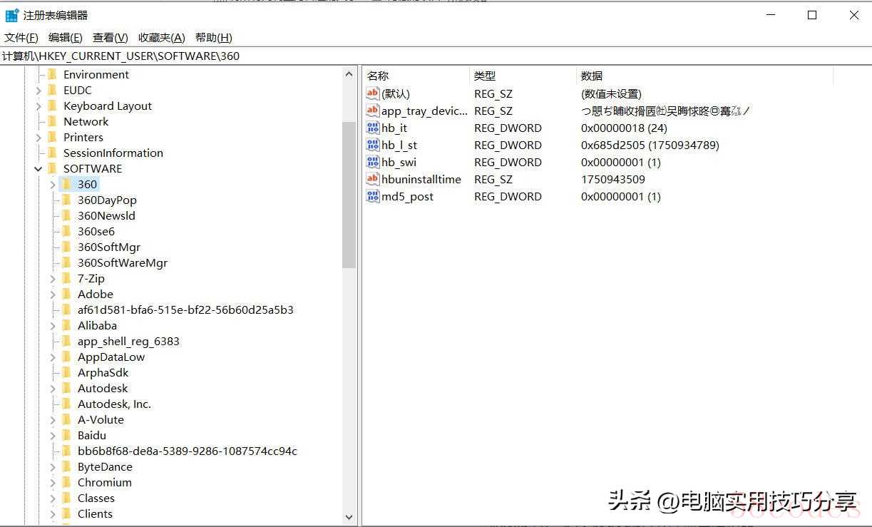 依次展开上述路径,查找与软件相关的键值