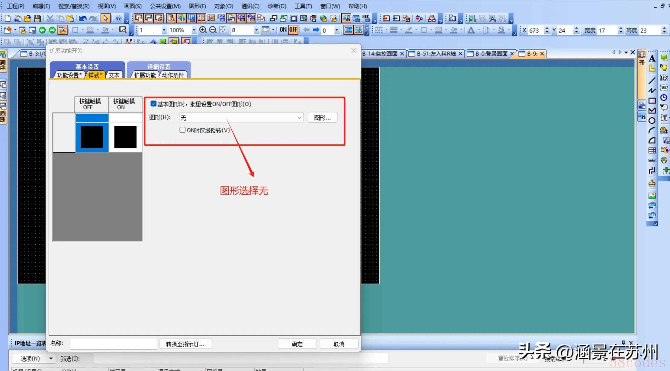 通过按钮的“事件”---“单击”---选择打开系统设置。其他步骤类似三菱触摸屏操作。