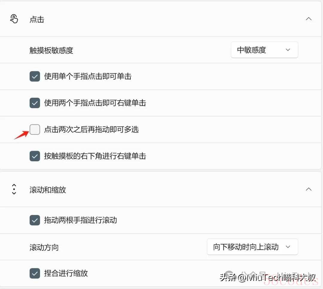 第二类:常规操作自定义设置,包括点击、滚动、缩放等。文章一开头提到的几种常见功能,在这里都能找到,如果不想要某项功能,可取消勾选。比如【点击两次之后再拖动即可多选】,某些情况下可能会造成误操作,我可能会选择取消它。