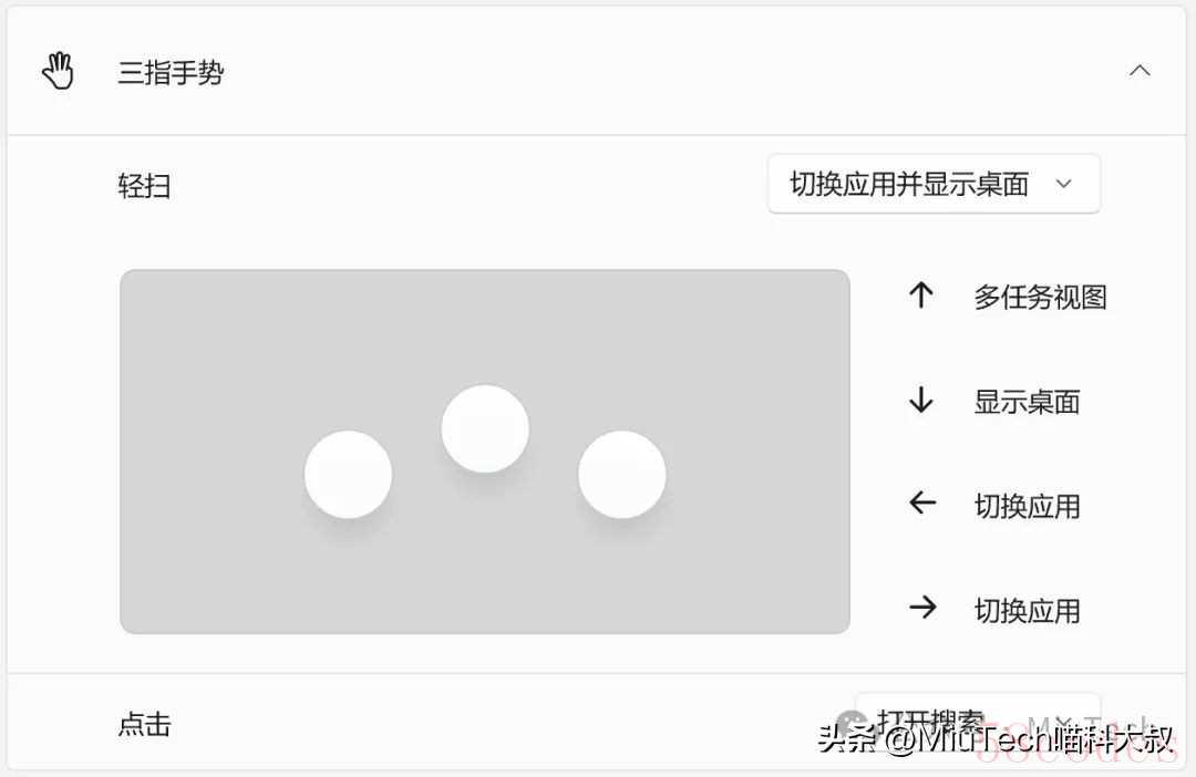 第三类:三指、四指手势设置。你可知道以下这些手势操作?- 默认状态下,三指同时点击触摸板,会弹出“Windows搜索框”;