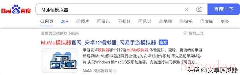 1.打开网页搜索“MuMu模拟器”,找准MuMu模拟器官网进入;