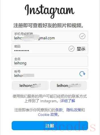 以网页版Instagram注册为例: