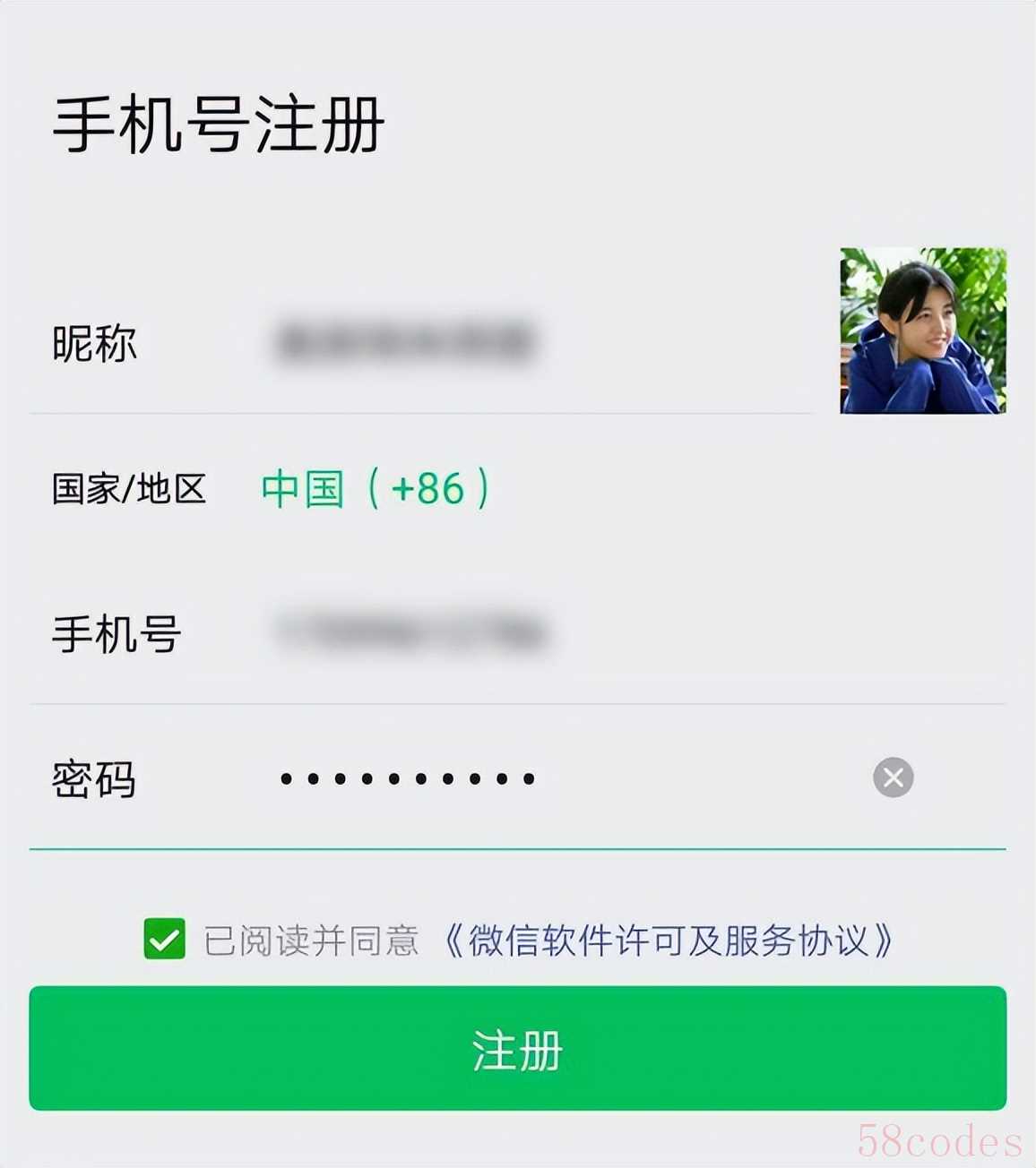 这是创建第一个微信账号的标准流程,需要一个未注册过微信的手机号码。
