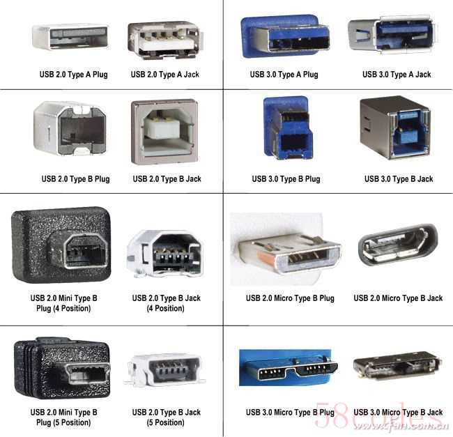 其中,Mini USB和Micro USB再往下也可以进一步划分出Mini USB-A、Mini USB-B、Micro USB-A、Micro USB-B,而USB Type-B根据速度的不同,USB2.0和USB3.0标准版本的接口样子也存在差异。