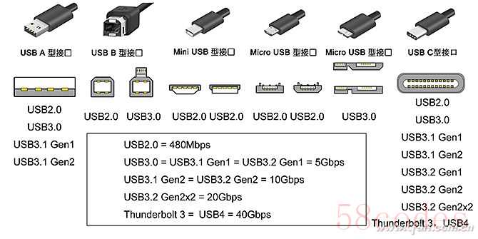 为了便于大家理解,笔者整理了常见各种USB标准的特色,并以USB接口形态为引和图文并茂的形式给大家展示出来。
