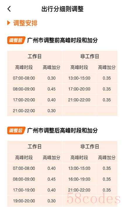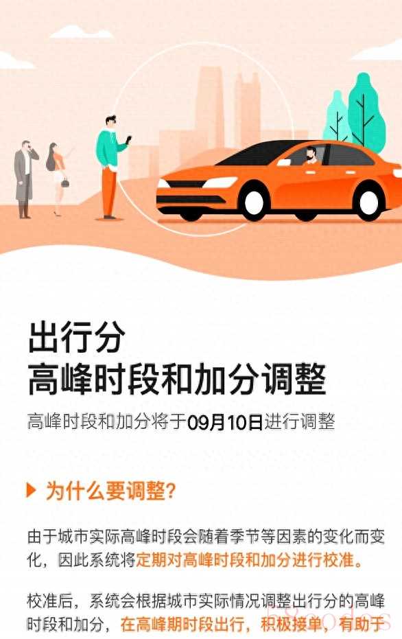 打开司机端—口碑值—出行分规则,最上面就是城市最新高峰表。