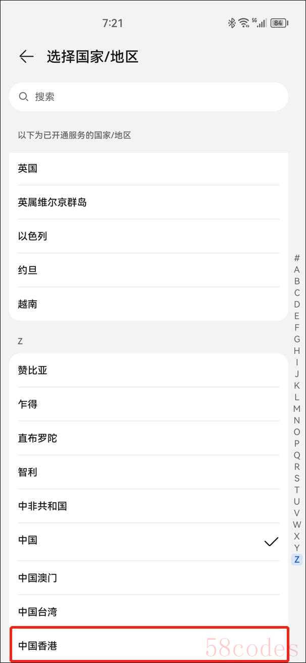 在“选择国家/地址”里面,我们选择“中国香港”。