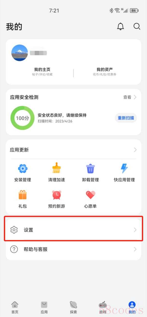 首先,我们打开华为手机上的“应用市场”,然后点击右下角的“我的”,在里面找到“设置”然后点击它