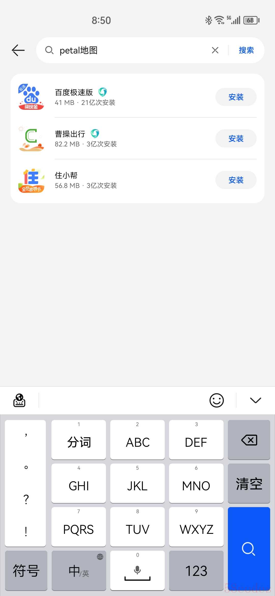 设置完之后再进行搜索,这回,就可以搜索到Petal地图了,也可以进行安装