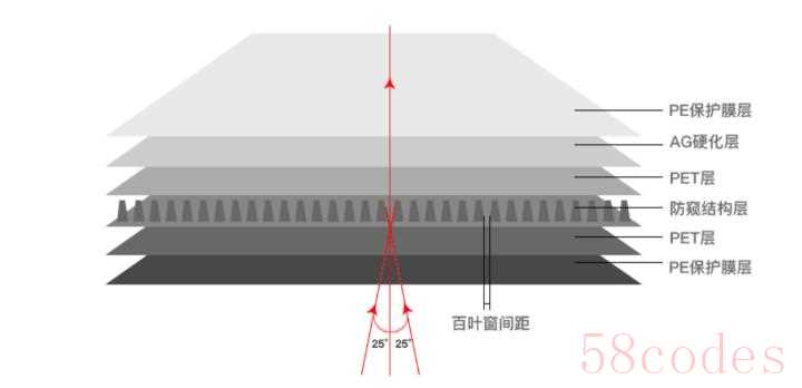 它用上了超微细百叶窗光学技术,相当于把百叶窗缩小N倍,再放进手机膜里面。
