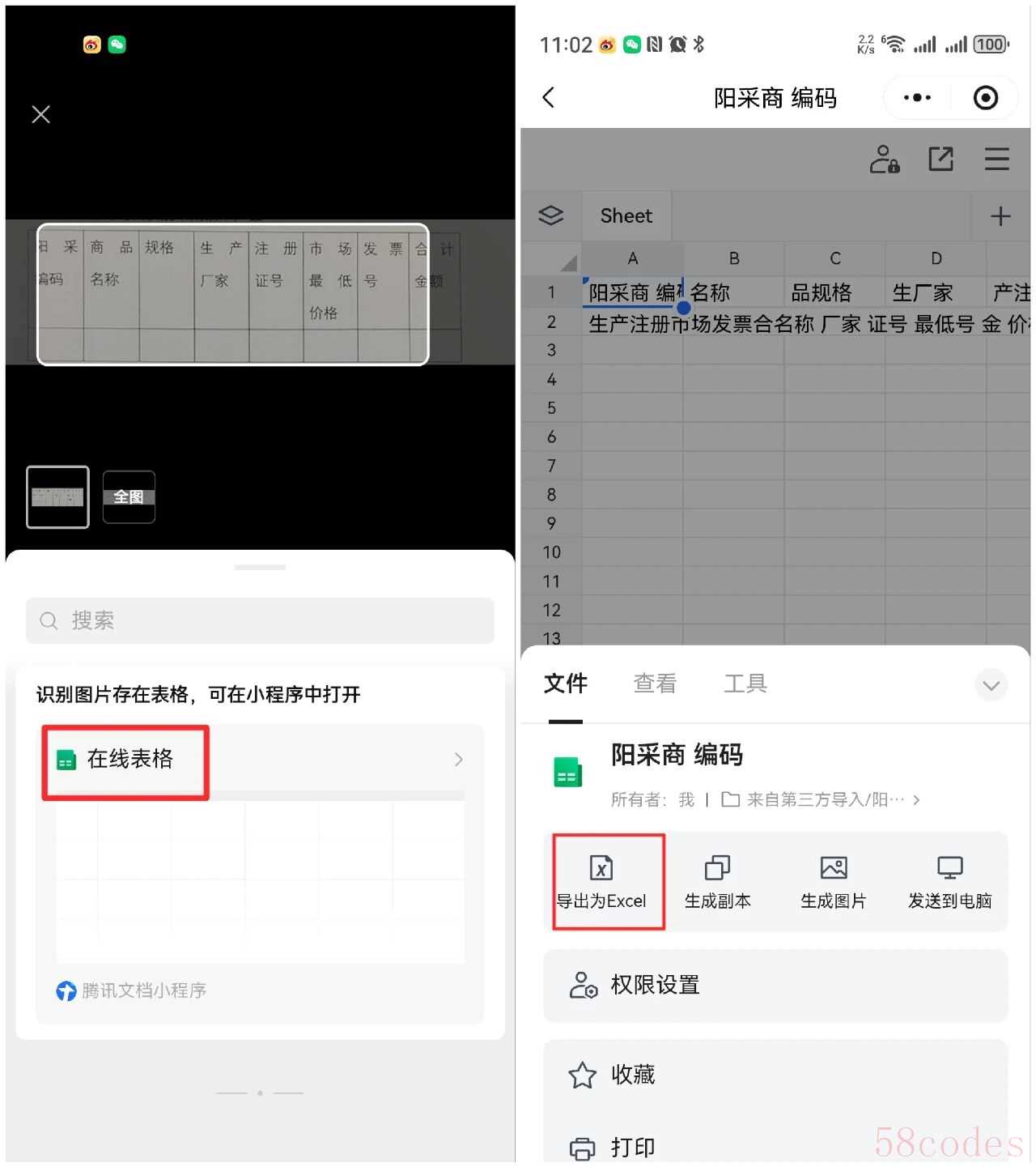 拍摄完之后,微信就会对拍摄的图片进行扫描和识别,一旦检测到所拍摄的内容是表格的话,就会在下方出现在线表格的选项。
