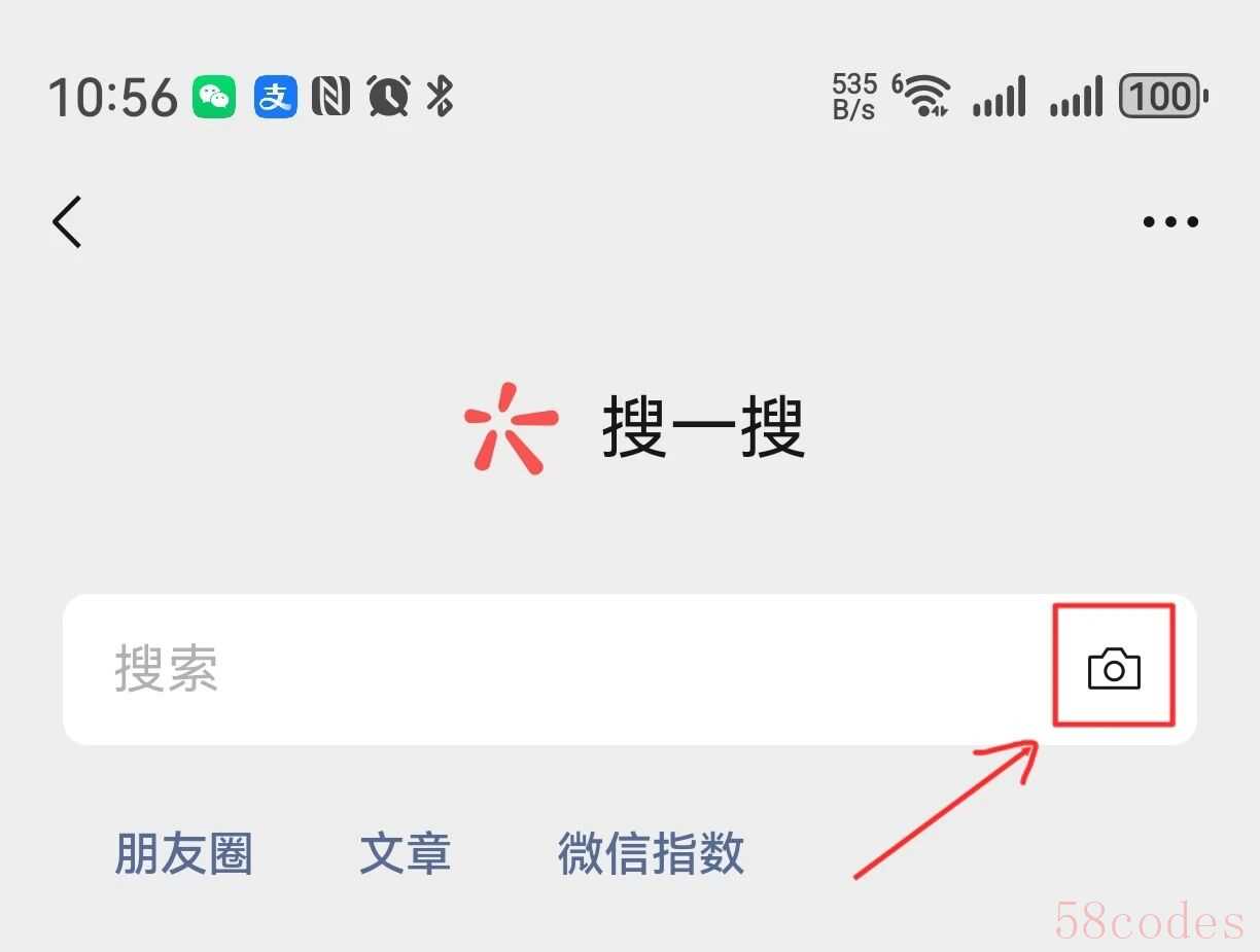 从微信的发现页进入搜一搜页面,然后点击搜索框右侧的相机图标。