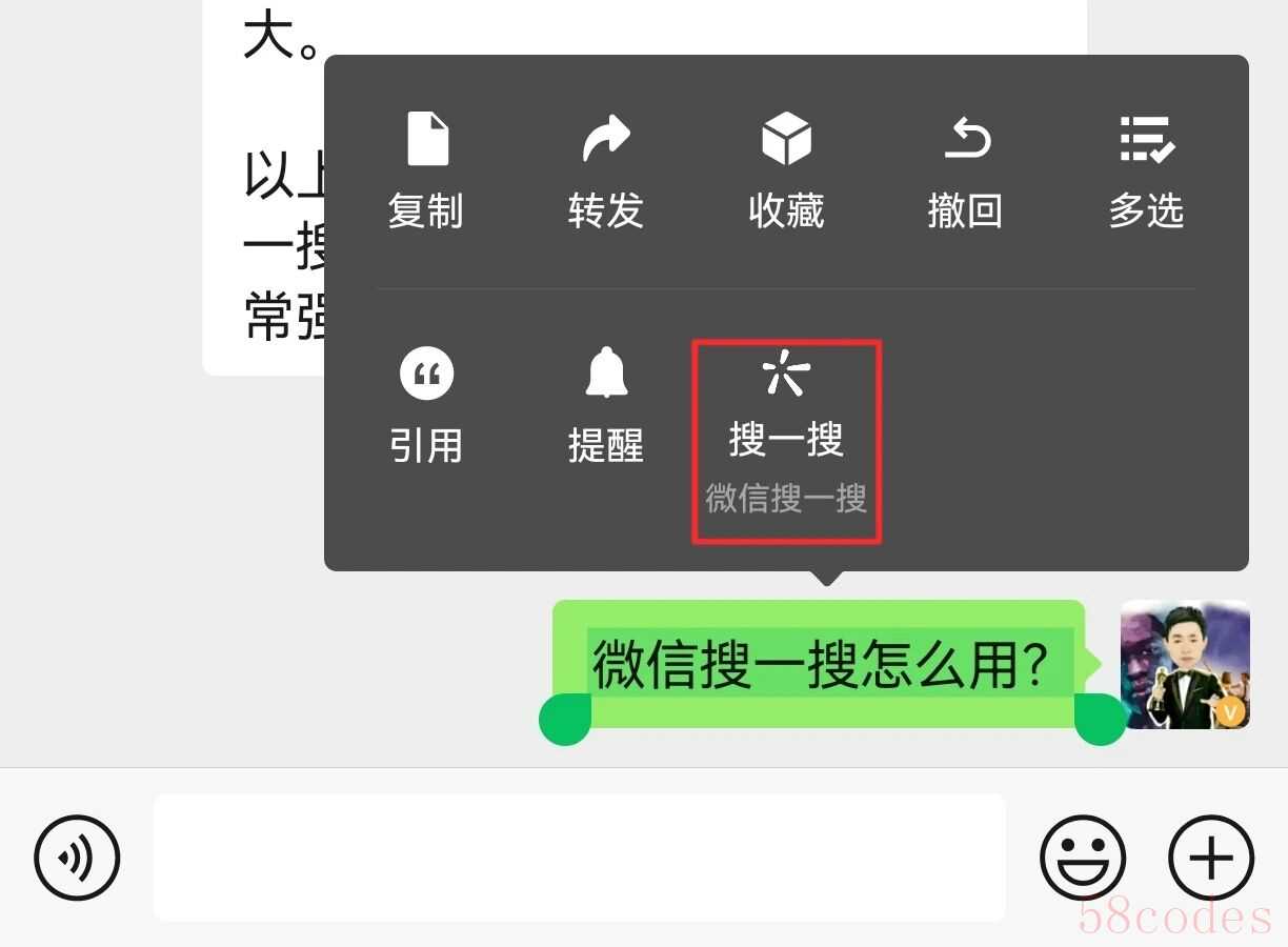 在与任意微信好友聊天的过程中,如果在聊天内容中发现了不懂的内容,可以使用微信的搜一搜功能进行搜索。
