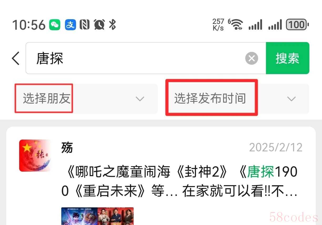 另外,还可以对指定微信好友的朋友圈进行搜索,也可以指定发布的时间范围。