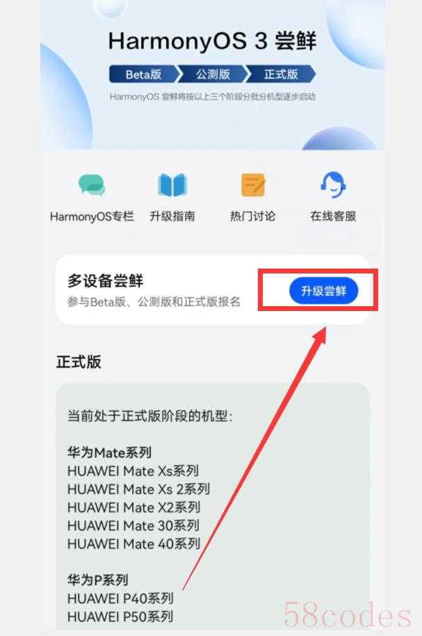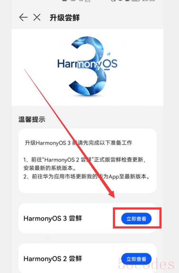 升级鸿蒙3.0:打开“我的华为”app,点击“升级尝鲜”按钮。