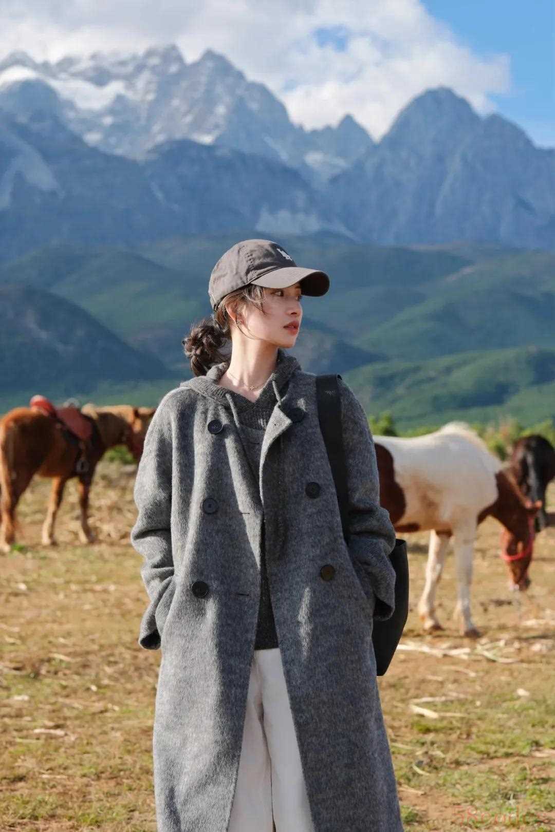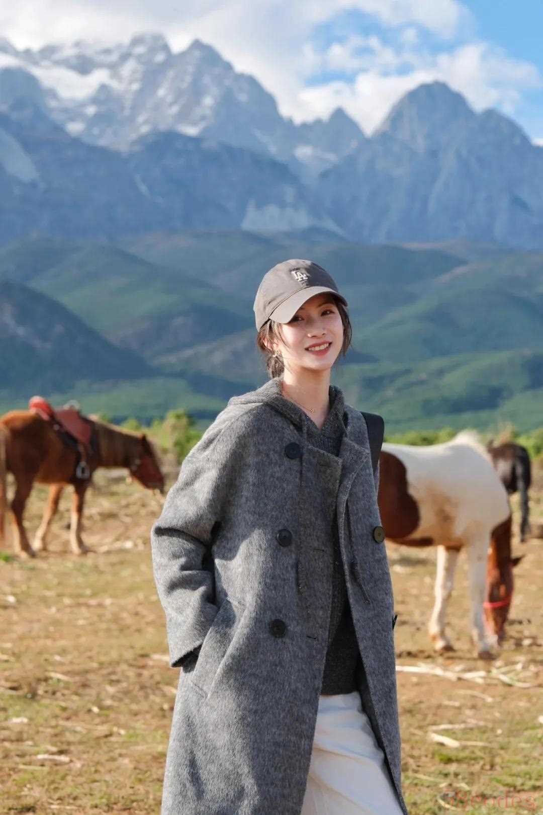 户外拍照真的不用太多技巧,重点是要松,双手插兜的姿势本身就能让身体自然不僵硬,表情别太刻意,眼神放松一点,动作小一点反而更有感觉,拍出来的照片才会带着那种自然的气质,漂亮又出片。