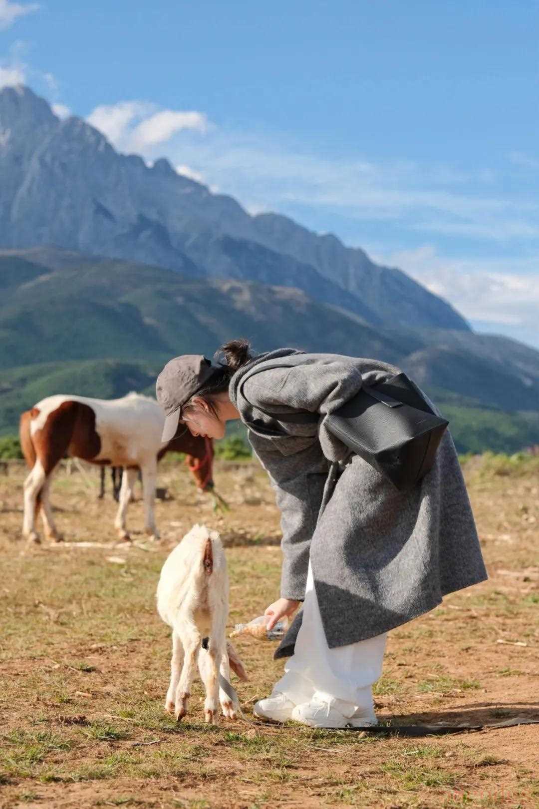 如果拍照的地方有小动物,一定要拍几张,弯腰下来,轻轻伸手去和它互动,笑得自然一点,这种画面很治愈,特别适合发朋友圈,户外拍照本来就讲究自然,带点生活感会更出圈。